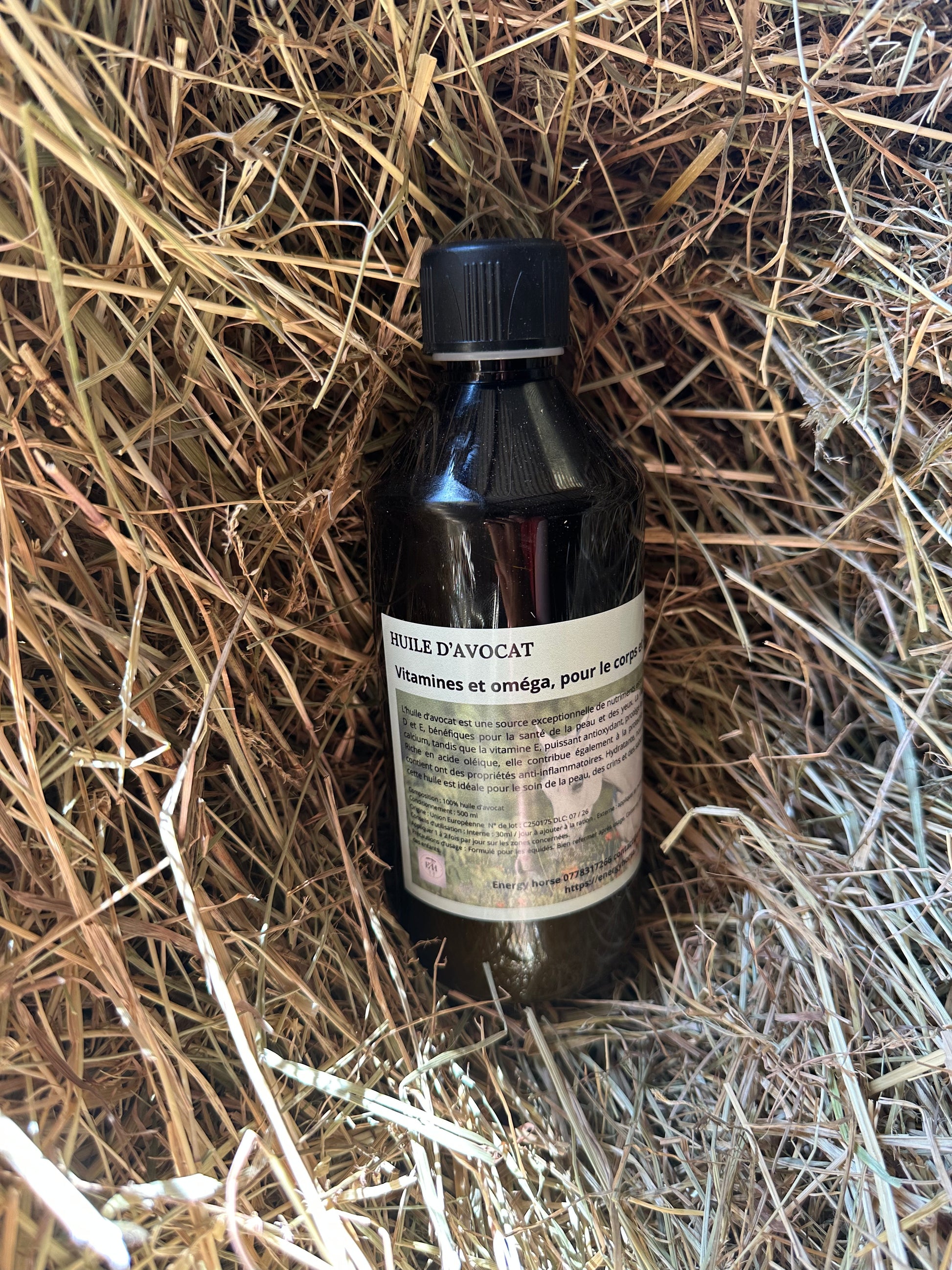Riche en acides gras essentiels, vitamines A, D et E, l’huile d’avocat apporte un soutien précieux à la santé générale du cheval. Utilisée en complément alimentaire, elle favorise une belle qualité de robe, soutient la souplesse de la peau et contribue à l’éclat des crins. Sa richesse en antioxydants aide également à protéger les cellules du stress oxydatif. L’huile d’avocat participe au bon fonctionnement du système immunitaire et peut accompagner les chevaux en période de convalescence ou de fatigue. Appliquée en usage externe, elle nourrit, assouplit et apaise les zones sèches ou irritées de la peau et des sabots.