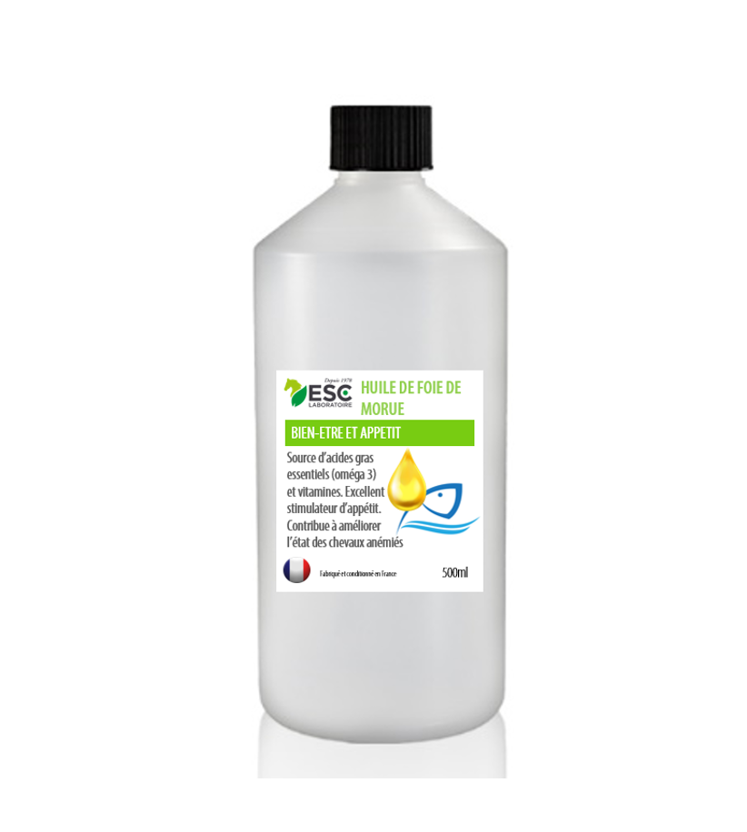 Caractéristiques : densité à 20°C 0.920-0.930, acidité oléique max 2%, indice d’iode 150-180. Vitamine A min 1000 UI/kg, Vitamine D3 min 100 UI/ kg, Vitamine E min 100 UI / kg, teneur en oméga 3 20%. Teneur en dioxine max 5mg/kg.